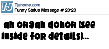 - # 103644 There is NO WAY I could ever be an organ donor. I would, however, consider giving away my drum set.