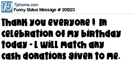 X says Thank you everyone ! In celebration of my birthday today - l will match any cash donations given to me.