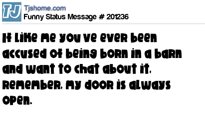 X says If like me you’ve ever been accused of being born in a barn and want to chat about it, remember, my door is always open.
