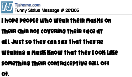 X is I hope people who wear their masks on their chin not covering their face at all just so they can say that they're wearing a mask know that they look like something their contraceptive fell off of.