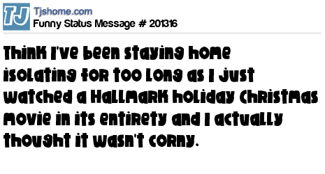 X is Think I've been staying home isolating for too long as I just watched a Hallmark holiday Christmas movie in its entirety and I actually thought it wasn't corny.