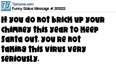 X says If you do not brick up your chimney this year to keep Santa out, you’re not taking this virus very seriously.