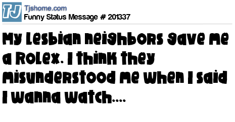 X says My lesbian neighbors gave me a Rolex. I think they misunderstood me when I said I wanna watch....