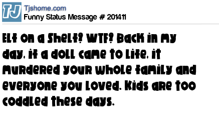 - # 173666 Kids today are so coddled- Elf on the Shelf, Toy Story. In my day, if dolls magically came to life, they murdered you and everyone you loved.