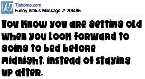 X says You know you are getting old when you look forward to going to bed before midnight, instead of staying up after.