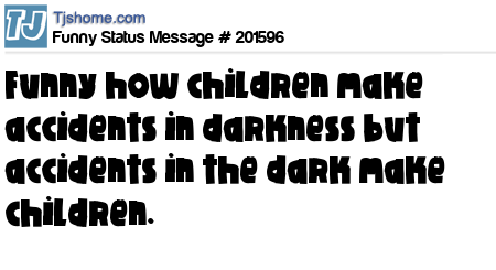 X says Funny how children make accidents in darkness but accidents in the dark make children.