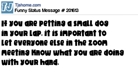 X says If you are petting a small dog in your lap, it is important to let everyone else in the zoom meeting know what you are doing with your hand.