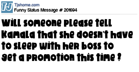 X is Will someone please tell Kamala that she doesn't have to sleep with her boss to get a promotion this time ?