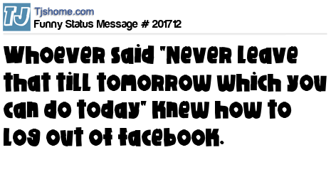 X is Whoever said "Never leave that till tomorrow which you can do today" knew how to log out of facebook.