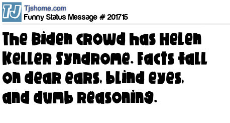 - # 201716 The Biden crowd has Helen Keller Syndrome. Facts fall on deaf ears, dumb reasoning and blind eyes.