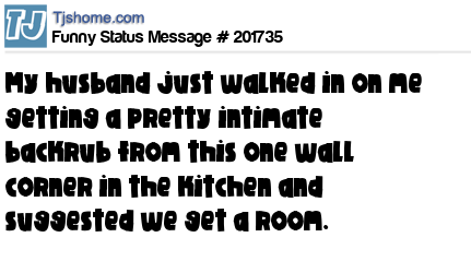 X says My husband just walked in on me getting a pretty intimate backrub from this one wall corner in the kitchen and suggested we get a room.