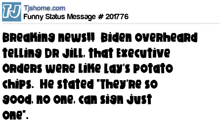 X says Breaking news!!  Biden overheard telling Dr Jill, that Executive Orders were like Lay's potato chips.  He stated "They're so good, no one, can sign just one".