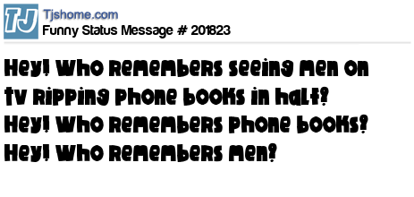 X says Hey! Who remembers seeing men on tv ripping phone books in half? Hey! Who remembers phone books? Hey! Who remembers men?
