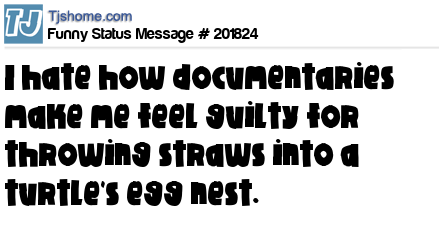 X says I hate how documentaries make me feel guilty for throwing straws into a turtle's egg nest.