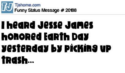 X  I heard Jesse James honored Earth Day yesterday by picking up trash...