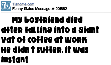 X says       My boyfriend died after falling into a giant vat of coffee at work      He didn’t suffer, it was instant