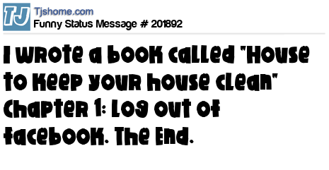 X is I wrote a book called "House to keep your house clean" Chapter 1: Log out of facebook. The End.