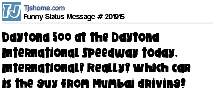 X says Daytona 500 at the Daytona International Speedway today. International? Really? Which car is the guy from Mumbai driving?