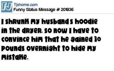 X says I shrunk my husband’s hoodie in the dryer, so now I have to convince him that he gained 30 pounds overnight to hide my mistake.