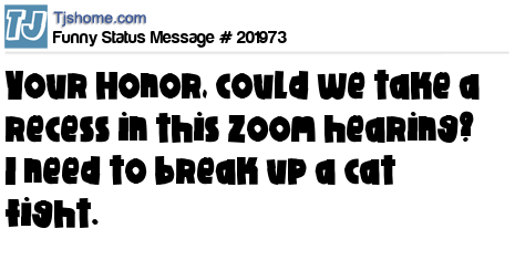 X says Your Honor, could we take a recess in this Zoom hearing? I need to break up a cat fight.