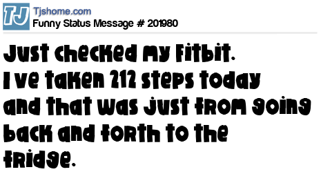 X says Just checked my Fitbit. I’ve taken 212 steps today and that was just from going back and forth to the fridge.