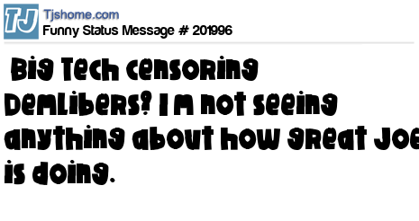 X says Big Tech censoring Demlibers? I’m not seeing anything about how great Joe is doing.