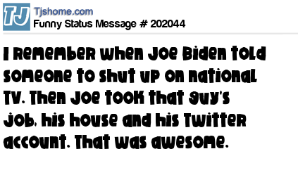 X is I remember when Joe Biden told someone to shut up on national TV. Then Joe took that guy's job, his house and his Twitter account. That was awesome.