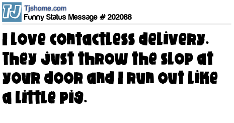 X says I love contactless delivery. They just throw the slop at your door and I run out like a little pig.