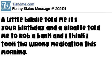X says A little birdie told me it’s your birthday and a giraffe told me to rob a bank and I think I took the wrong medication this morning.
