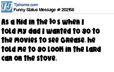 X says As a kid in the 70’s when I told my dad I wanted to go to the movies to see Grease, he told me to go look in the lard can on the stove.