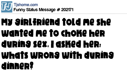 X says My girlfriend told me she wanted me to choke her during sex, I asked her; whats wrong with during dinner?