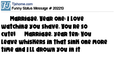 X says Marriage, Year one: I love watching you shave. You’re so cute! Marriage, year ten: You leave whiskers in that sink one more time and I’ll drown you in it