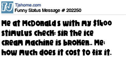 X says Me at McDonald’s with my $1400 stimulus check: sir the ice cream machine is broken.. Me: how much does it cost to fix it.