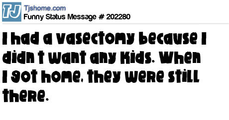 X says I had a vasectomy because I didn’t want any kids. When I got home, they were still there.