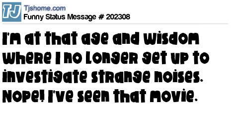 - # 202354 I'm at that age where if I hear a strange noise downstairs I'm too lazy to go investigate it and just think "Well I had a good run".