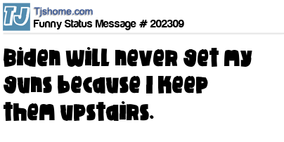 - # 208018 Joe Biden will never get my guns because I keep them upstairs.