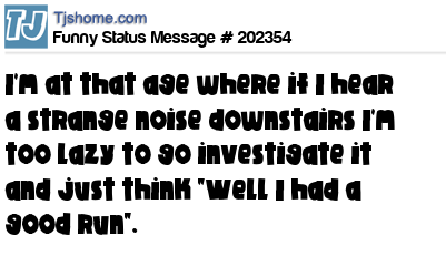 X I'm at that age where if I hear a strange noise downstairs I'm too lazy to go investigate it and just think "Well I had a good run".