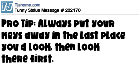 X says Pro Tip: Always put your keys away in the last place you’d look, then look there first.