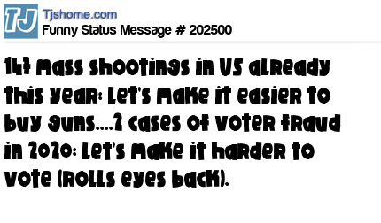 X is 147 mass shootings in US already this year: let's make it easier to buy guns....2 cases of voter fraud in 2020: let's make it harder to vote (rolls eyes back).