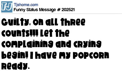 X is Guilty, on all three counts!!! Let the complaining and crying begin! I have my popcorn ready.