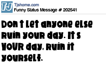 X says Don’t let anyone else ruin your day. It’s YOUR day, ruin it yourself.