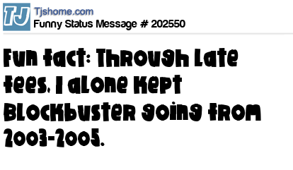 X says Fun fact: Through late fees, I alone kept Blockbuster going from 2003-2005.