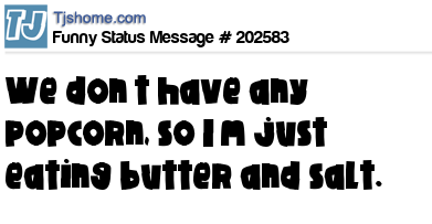X says We don’t have any popcorn, so I’m just eating butter and salt.