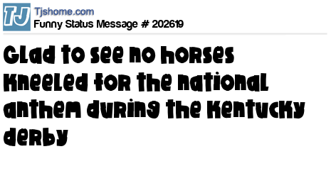 X says Glad to see no horses kneeled for the national anthem during the kentucky derby