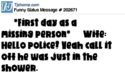 X says       *First day as a missing person*      Wife: Hello police? Yeah call it off he was just in the shower.