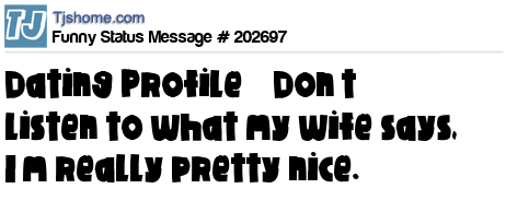 X says Dating Profile – Don’t listen to what my wife says, I’m really pretty nice.