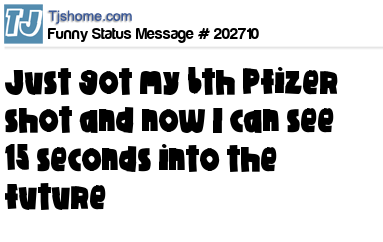 X says just got my 6th Pfizer shot and now I can see 15 seconds into the future