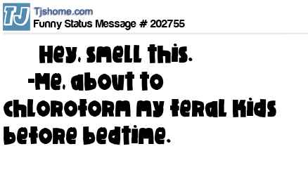 X says “Hey, smell this.” -Me, about to chloroform my feral kids before bedtime.