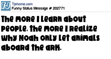 X says The more I learn about people, the more I realize why Noah only let animals aboard the ark.