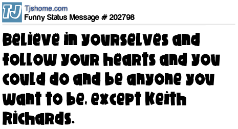 X is Believe in yourselves and follow your hearts and you could do and be anyone you want to be, except Keith Richards.
